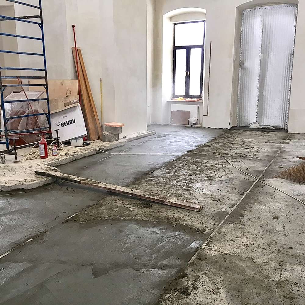 • Грунтование и нанесение стяжки. Она выполняется при помощи смеси Pin Up и цемента. Просыхает долго в непроветриваемой комнате.