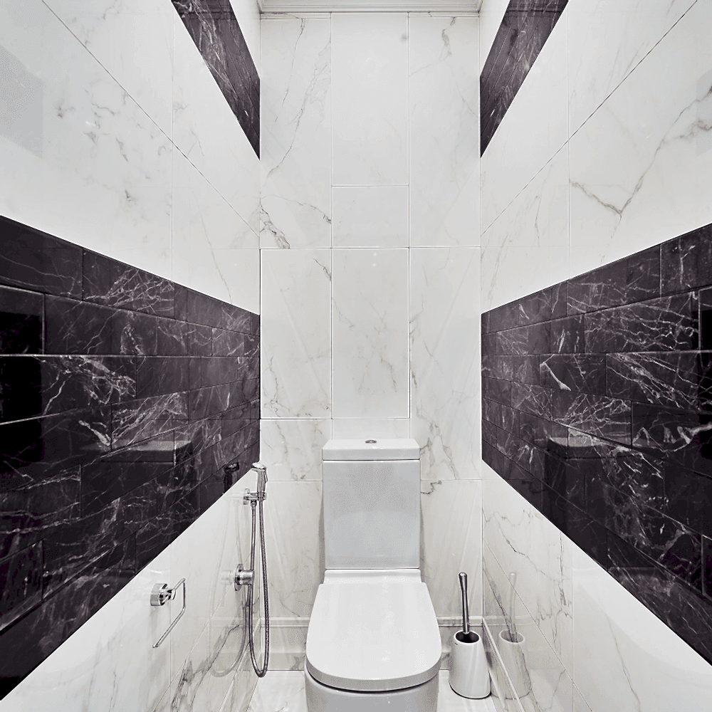 • Произвести демонтаж. Отключить унитаз, разобрать плитку с Pin Up и стен;