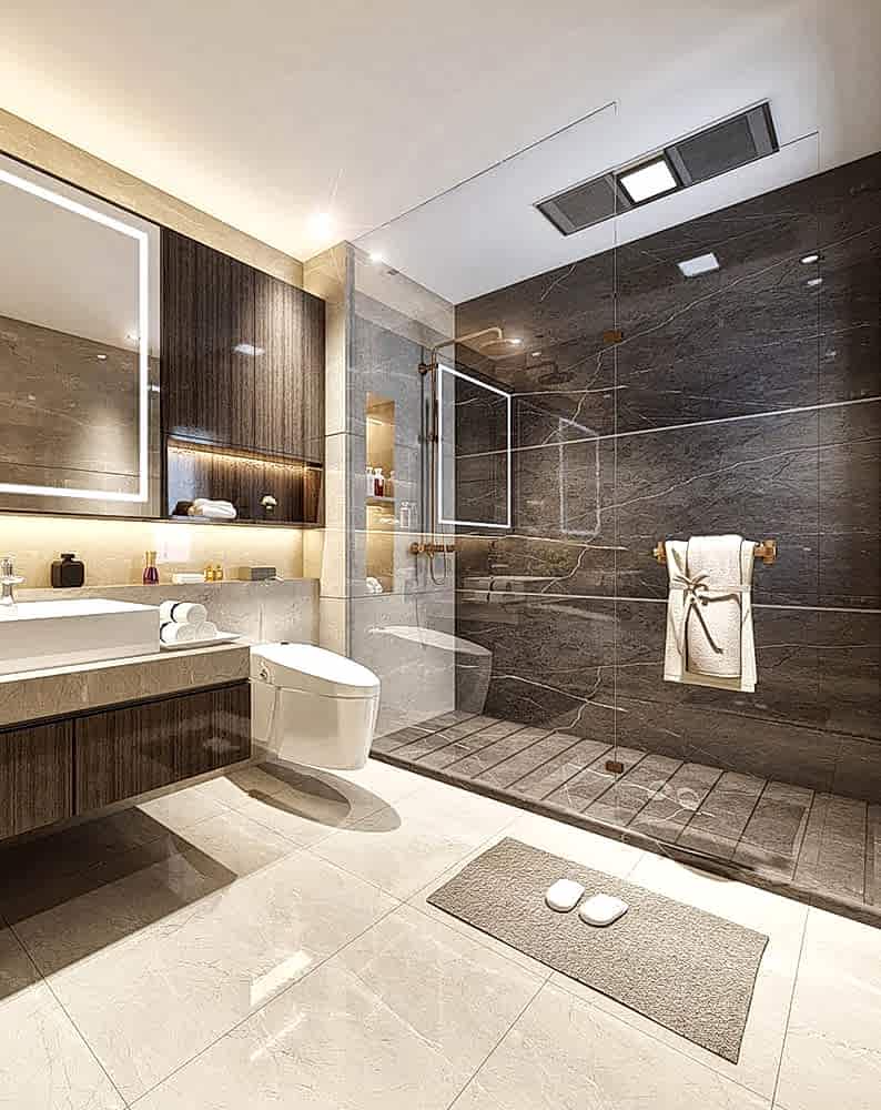 подходом. Если она достаточно маленькая, то в качестве декора лучше использовать светлые тона. Они зрительно увеличивают пространство. Дополнительно подойдут глянцевые материалы. Например, глянцевые натяжные потолки. Отличное решение для визуального увеличения пространства и для Pin Up от затопления. К тому же плитки не должны быть большими.