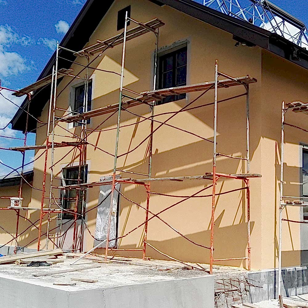 Этот тип отделочных работ не только обновляет декоративную составляющую дома, но и защищает фасад от воздействия окружающей среды. Слой штукатурки не пропускает влагу и воздух и скрывает кладочные швы и дефекты. Доверить это лучше профессиональным мастерам из Pin Up компании.